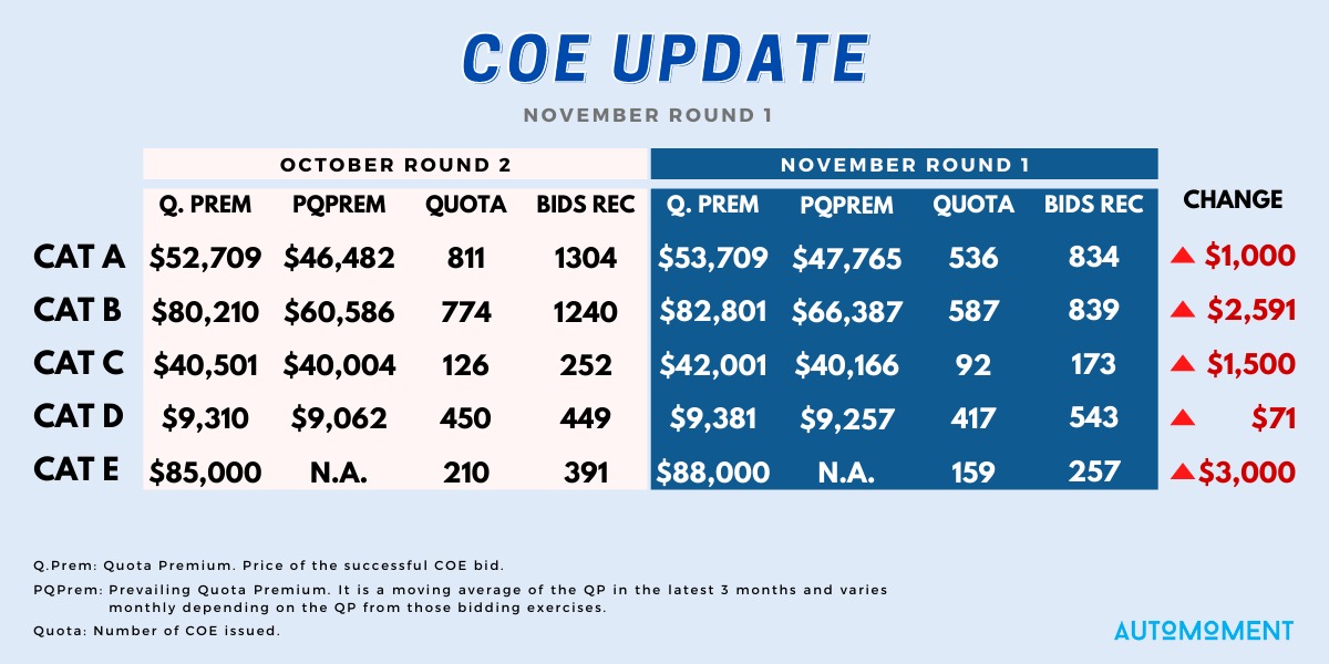 COE Update COE update has been released! 03 Nov 1st round of November’s COE update has been released!