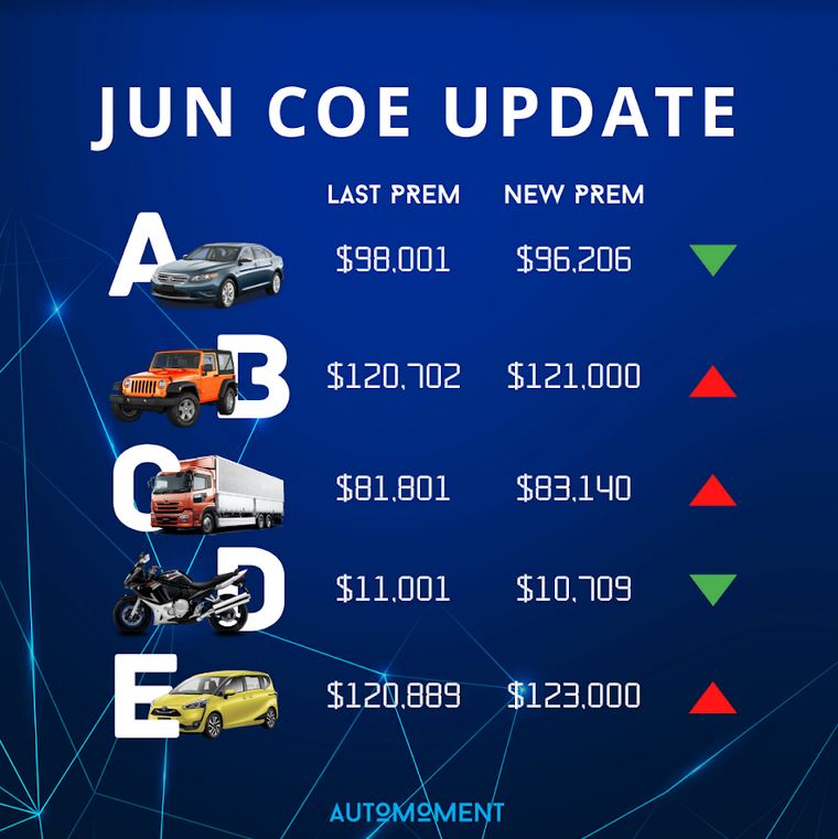 Bringing you the latest COE Update for June 2nd Bidding! Check out which categories dipped and which did not!