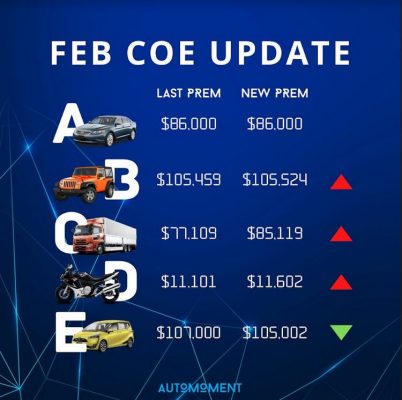 COE rises across all categories 🔴🔴🔴 Cat C hits new high at $87,790 [...]