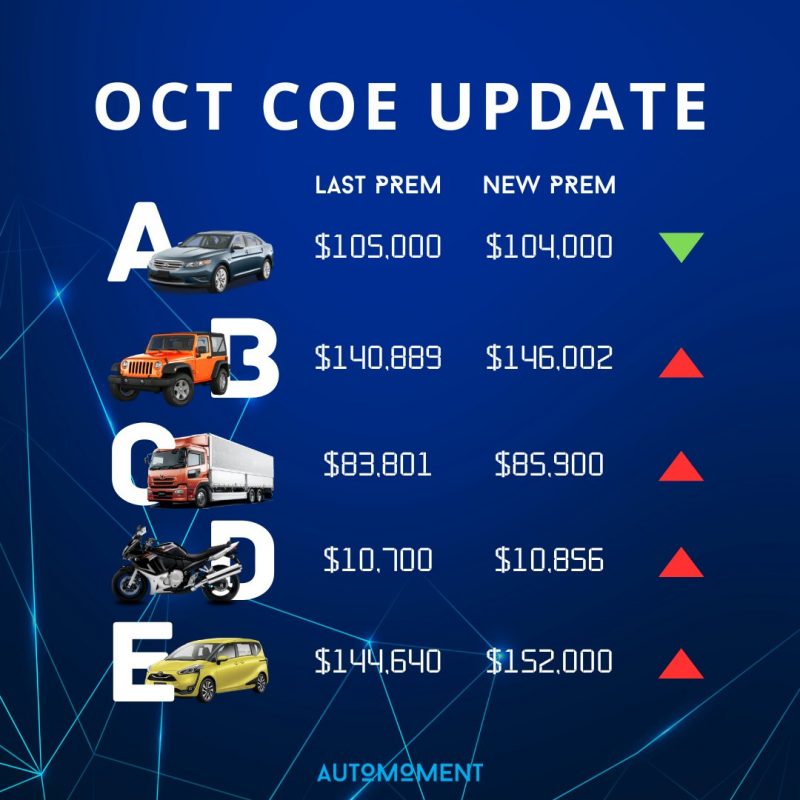 COE Update October COE Update – 1st Bidding 05 Oct October COE bidding sees Cat E reaching above $150,000 😱