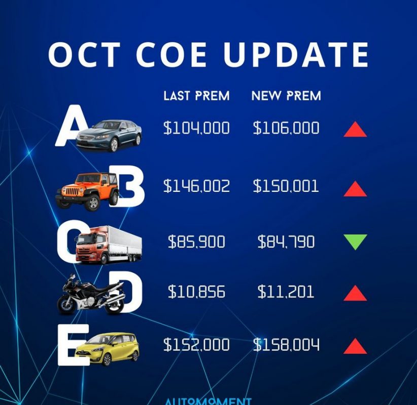 COE Update October COE Update – 2nd Bidding 18 Oct Latest COE results released! COE prices hike up across all categories except Cat C 🔺
